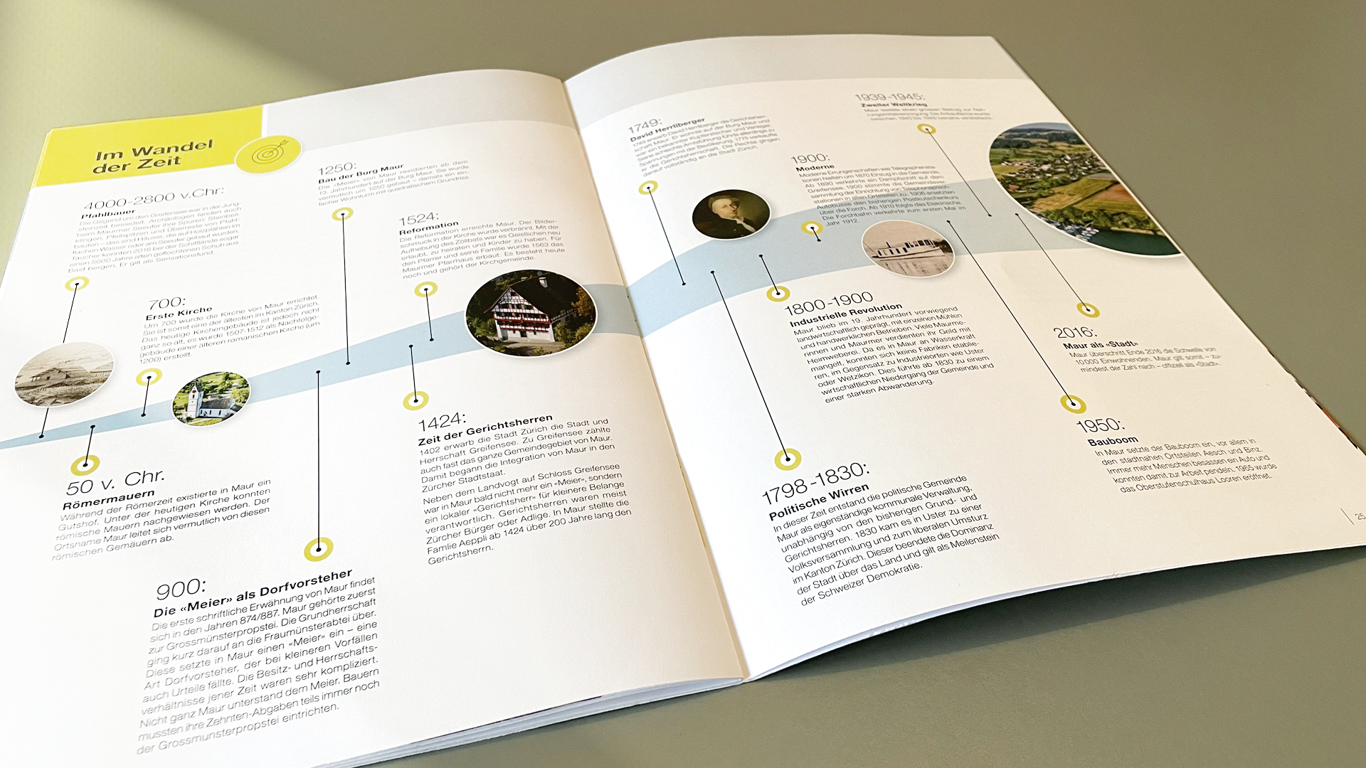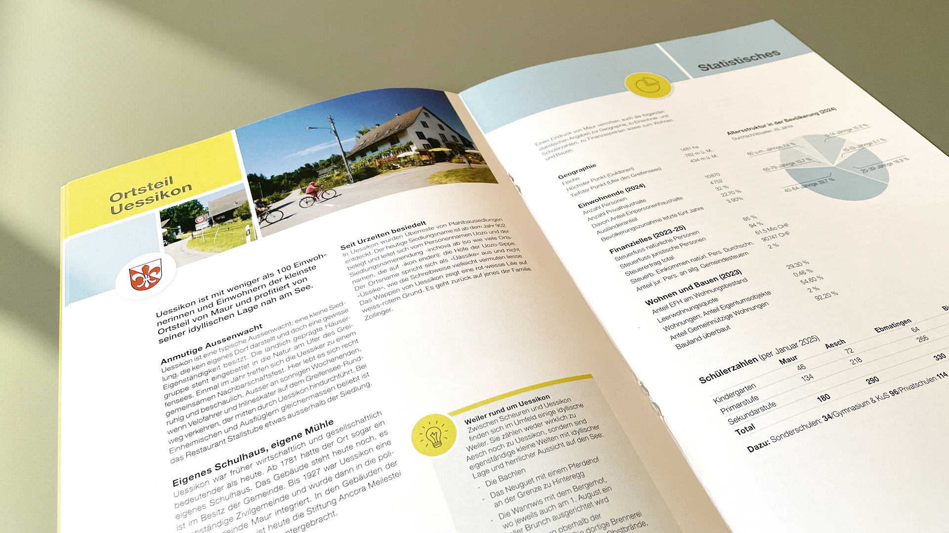 Für die Gemeinde Maur durfte ich eine umfassende Broschüre entwickeln und neugestalten, die allen neu zugezogenen Einwohnerinnen und Einwohnern bei der Anmeldung am neuen Wohnsitz überreicht wird. Die Broschüre bietet einen Überblick über die fünf Ortsteile der Gemeinde.