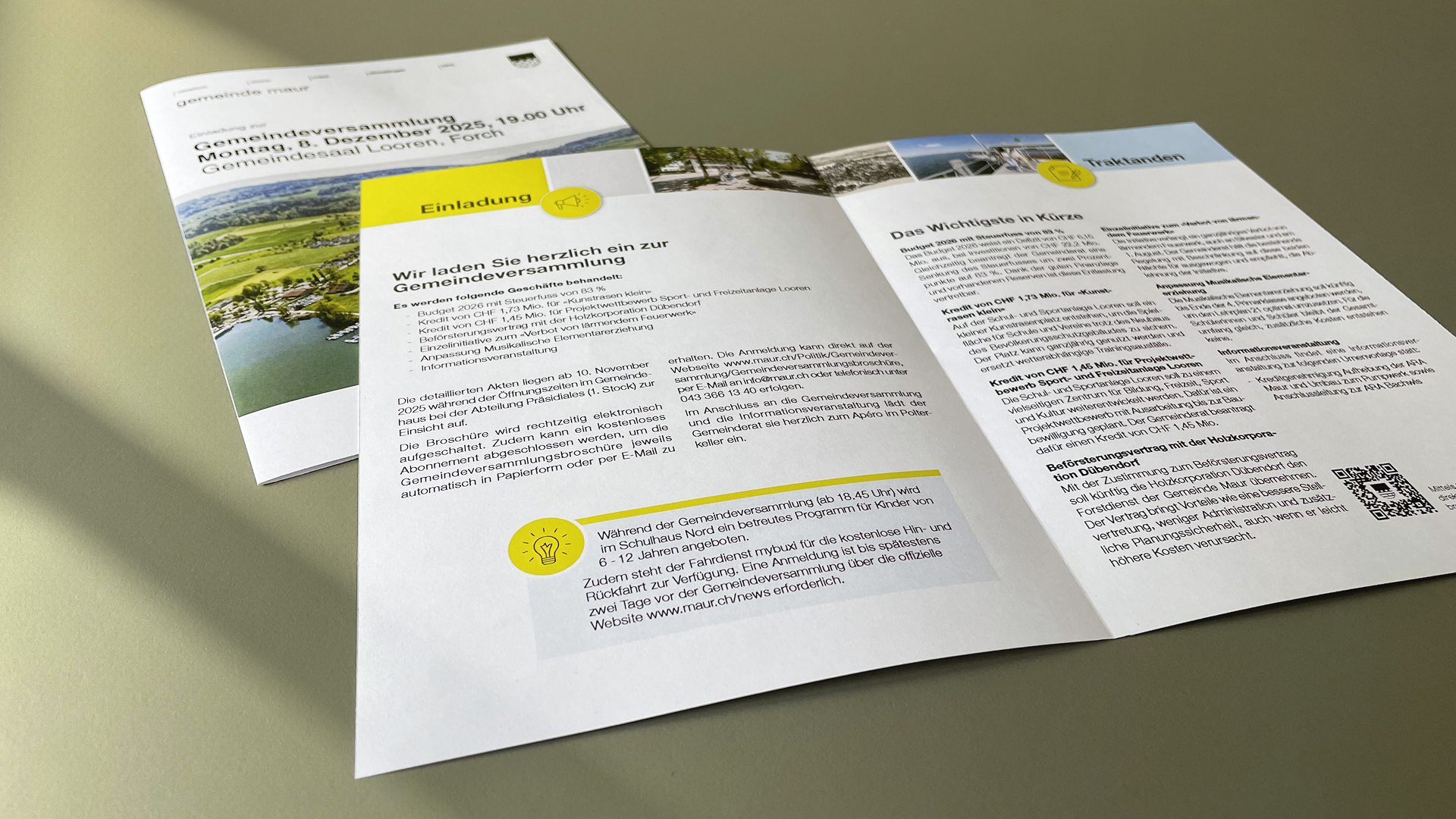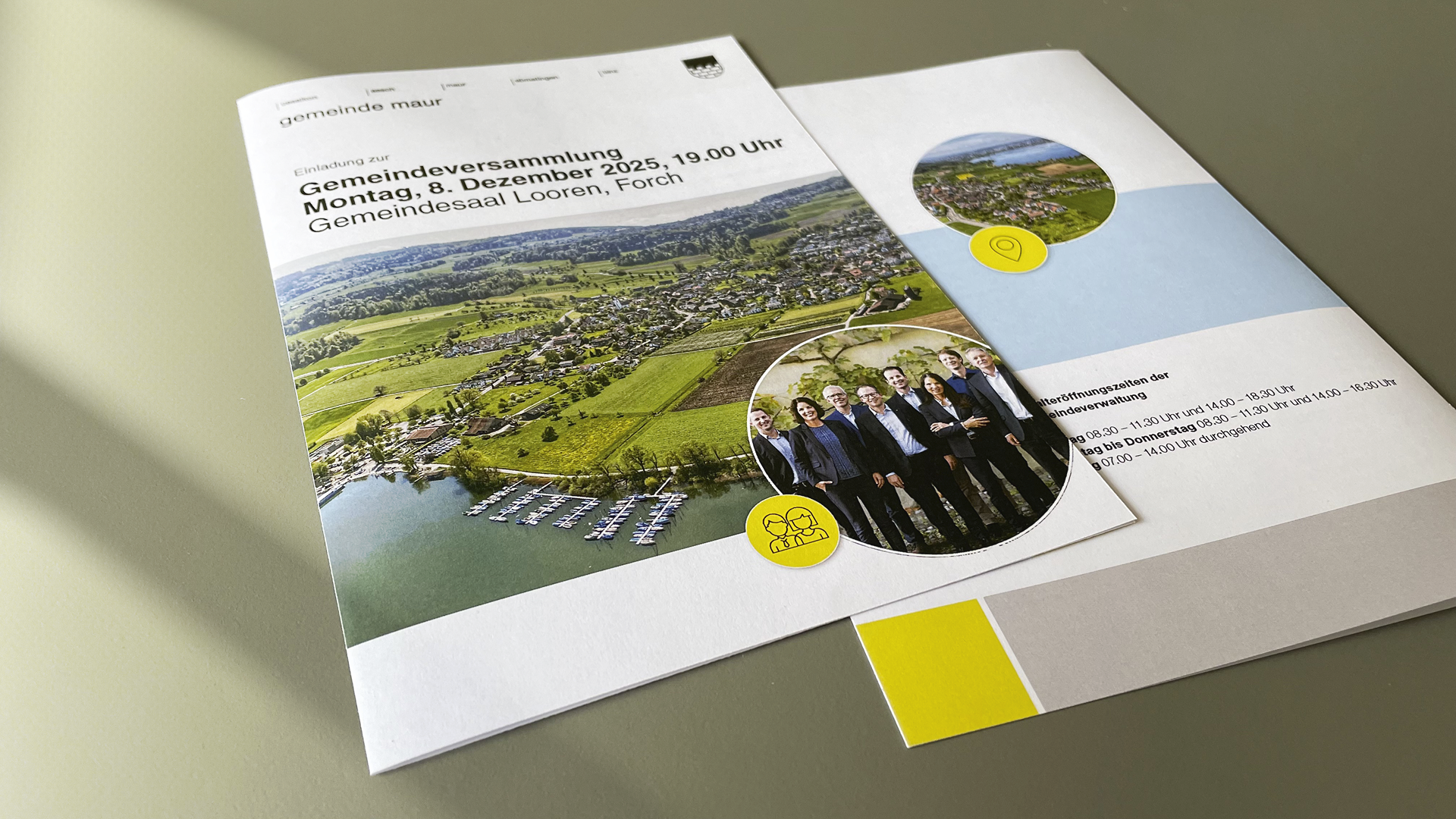 Die folgenden drei Beispiele veranschaulichen, wie klassische Printprodukte zur effektiven Öffentlichkeitsarbeit in der Gemeinde Maur eingesetzt werden können. Printmedien ermöglichen eine zielgerichtete und fassbare Ansprache unterschiedlicher Zielgruppen und gewährleisten eine konsistente Informationsvermittlung innerhalb der Gemeinde.